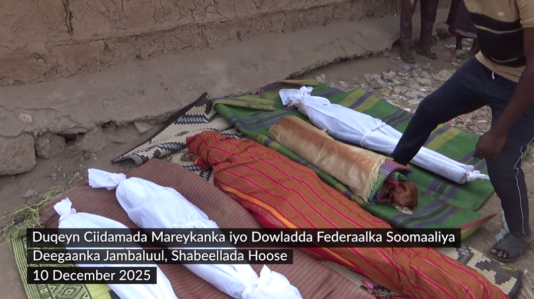 Waxaa la baahiyay muuqaal soo bandhigaya khasaaraha ka dhashay duqayn ciidamada saliibiyiinta Maraykanka iyo maleeshiyaadka murtadiinta ee murtazaqada u ah 10-kii bishan December ka gaysteen degaanka Jambaluul ee dhaca duleedka degmada Afgooye ee wilaayada islaamiga ah ee Sh/hoose.