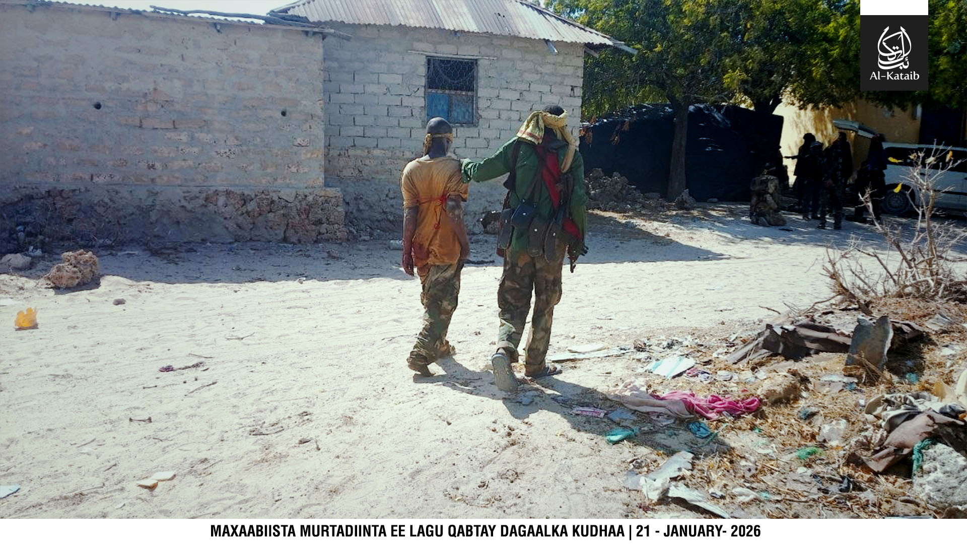 Mareykanka_oo_Duqayn_Ku_Dilay_Maxaabiistii_Murtadiinta_ee_KudhaaHaddaba halka hoose waxaad ka daawan kartaa sawirrada maxaabiista saraakiisha iyo askarta murtadiinta Jubaland ee shalay lagu qabtay dagaalkii Kudhaa, balse lagu dilay duqayn ay diyaaradaha Maraykanku kula beegsadeen goobtii lagu hayay.