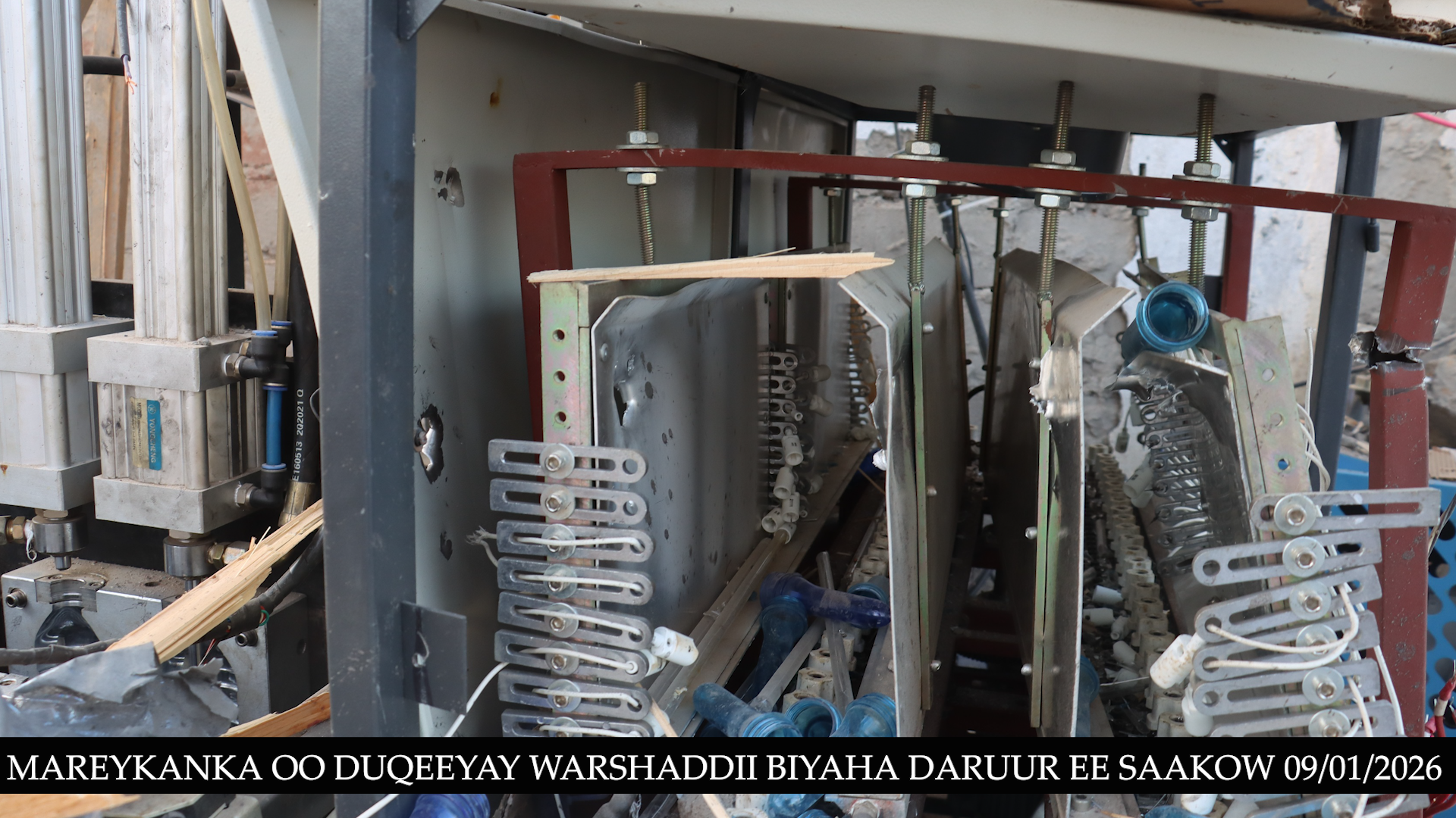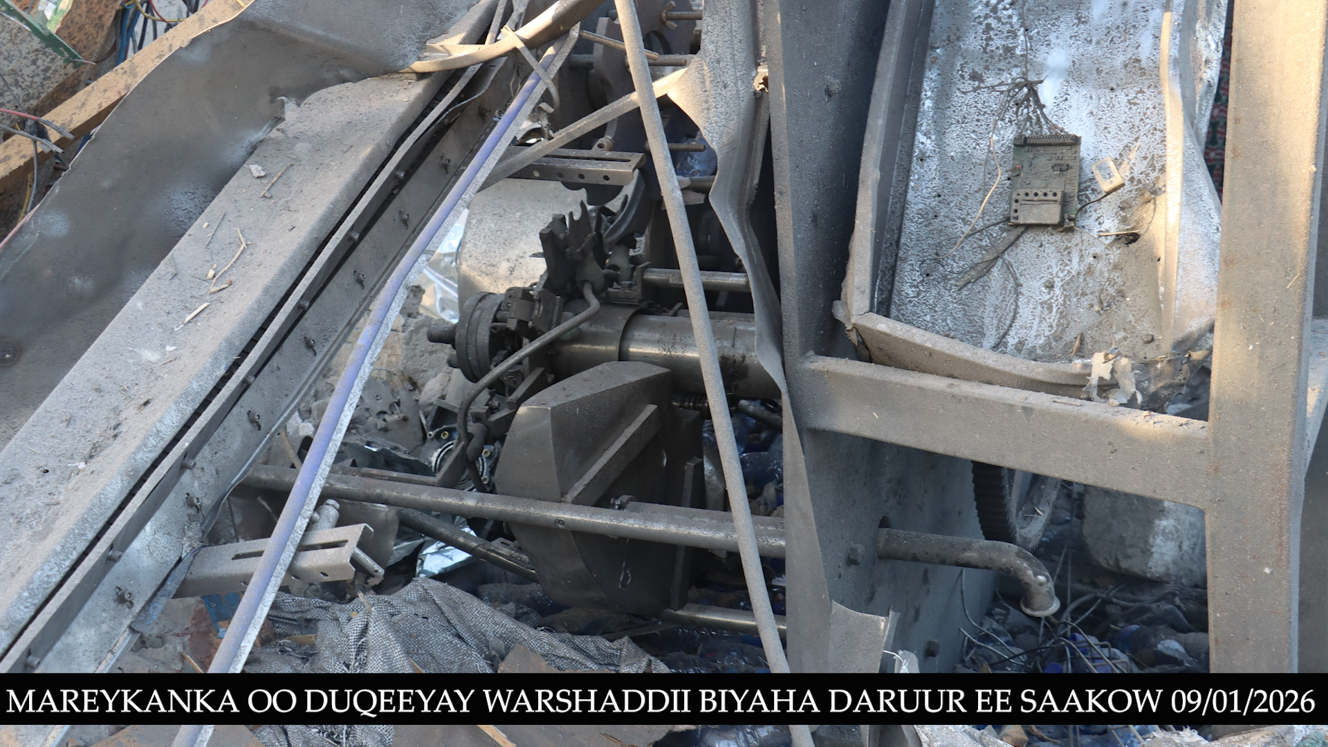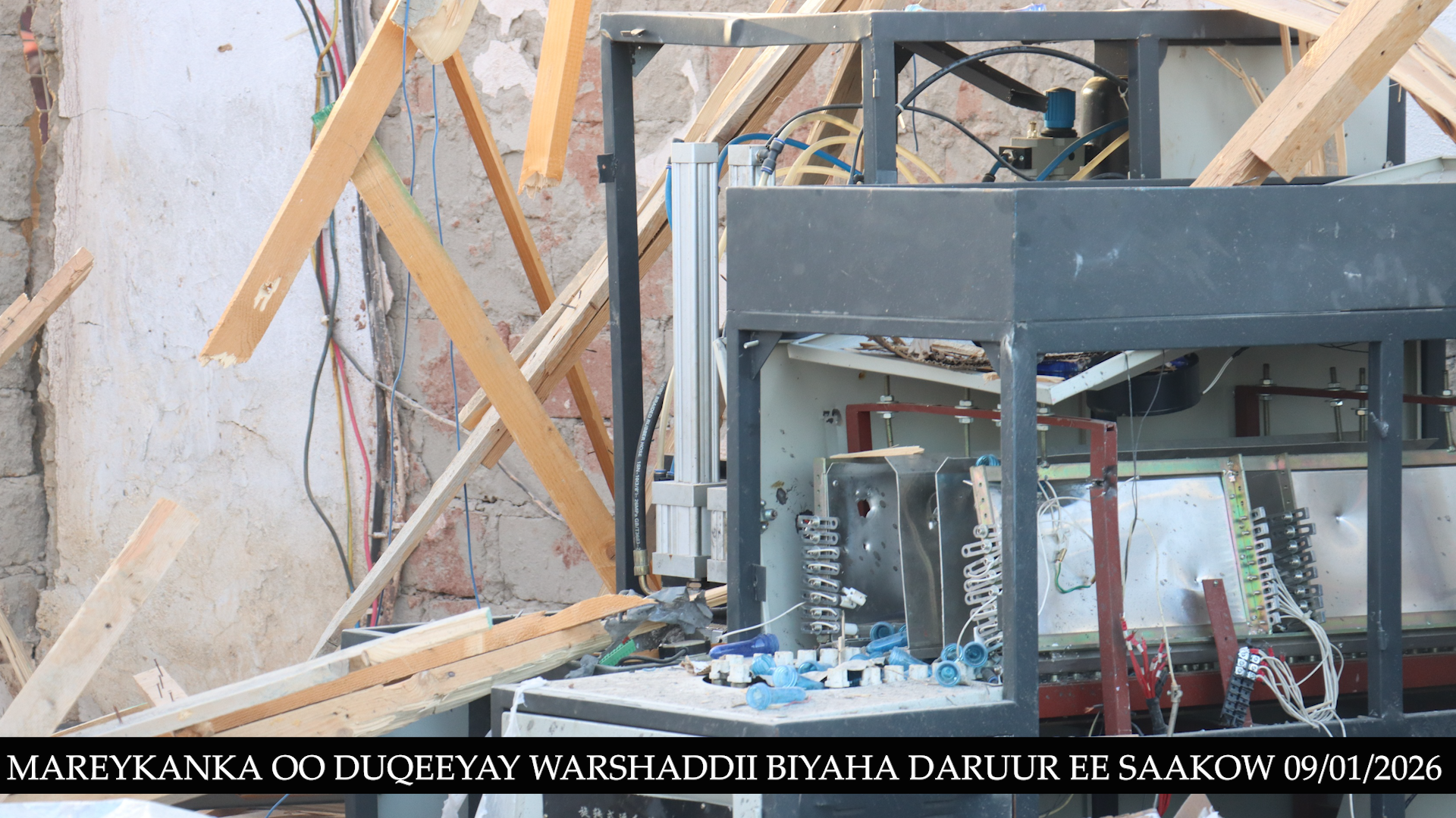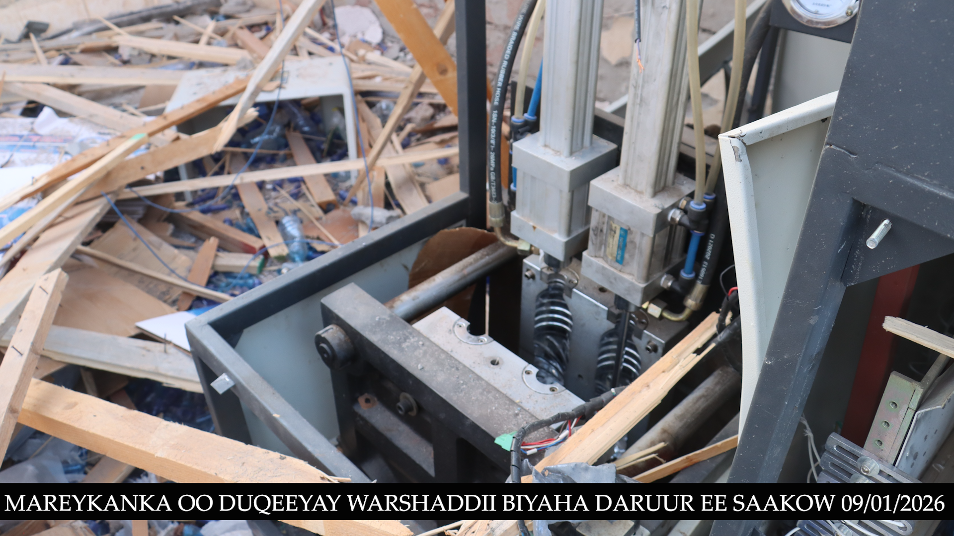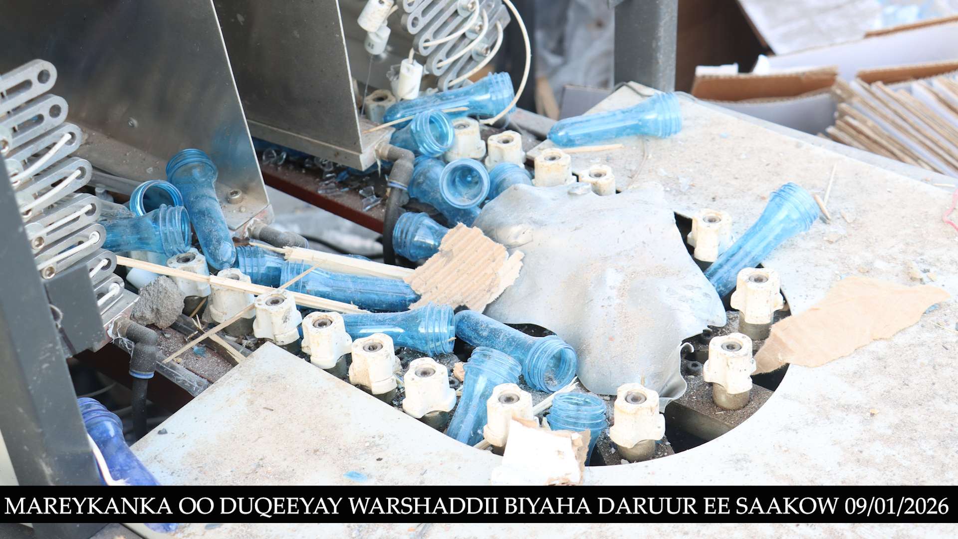 Abbaaro 11:00 habeennimo ee xalay, diyaaradaha dagaalka ee Mareykanka ayaa duqeyn ku bar tilmaameedsaday shirkad weyn oo soo saarta biyaha nadiifka ah ee la cabo, taasoo gabi ahaanba burburtay kadib markii ay ku dhaceen 6 gantaal. Sawirrada la soo qaaday shirkada ayaa muujinaya heerka burburka shirkadda, mana jiraan wax u badbaaday, haddey ahaan lahaayeen matooradeedii, mishiinadii biyaha sifeynayay, lacago iyo agab kala duwan oo ay warshaddu ku shaqeyneysay.